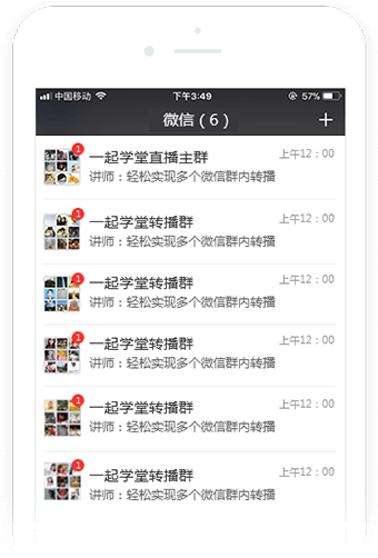 多群直播是针对教育培训、企业职场、电商微商、亲子母婴、其他需通过微信讲课传播内容的行业,专门定制的实时同步转播助手。